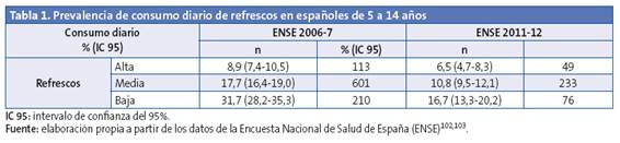 Las estrategias de precios pueden conducir a una disminución de las ventas de alimentos no saludables y a un aumento de las ventas de frutas y verduras, mejorando el consumo de energía y nutrientes, el IMC y la salud99. El impuesto a la grasa en Dinamarca originó una disminución de su consumo de un 10-15% y el impuesto a la comida basura en Hungría hizo que las ventas cayeran un 27%100. El impuesto a las bebidas azucaradas en México provocó un descenso en las compras del 12%, con mayor intensidad en los hogares de nivel socioeconómico bajo, donde alcanzó el 17%101. En la Tabla 1, con datos de la Encuesta Nacional de Salud, se observa un gradiente social muy intenso en el consumo diario de refrescos entre los menores españoles. Al comparar las dos encuestas más recientes102,103, se constata que tanto el consumo de estos productos como el gradiente social asociado al mismo disminuyeron en 2012 con respecto a 2006, probablemente por efecto de la crisis económica. Esta hipótesis es consistente con la alta elasticidad al precio observada para el consumo de bebidas azucaradas, que coloca el impuesto a este tipo de bebidas como una política con potencial para combatir la obesidad infantil en España y reducir el gradiente social asociado a la misma, pues el impuesto sería más efectivo en los consumidores de renta baja, que son los más sensibles al precio104. En cualquier caso, los incentivos económicos (impuestos y subsidios) deben equilibrarse para contrarrestar un posible impacto negativo en los grupos socialmente desfavorecidos.