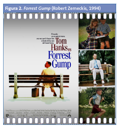 Forrest Gump (Robert Zemeckis, 1994), cuya magia está indiscutiblemente ligada a cuatro nombres: su director (Robert Zemeckis), su guionista (Eric Roth), su actor (Tom Hanks)... y el director de la BSO (Alan Silvestri). El "Forrest Gump Suite" es un verdadero leitmotiv, si bien la BSO incluye dos discos y 32 canciones que hacen todo un recorrido histórico por la biografía de este personaje tan especial ya en la historia del cine, y su "Run, Forrest, run!" (Cine y Pediatría 132)8 (Fig. 2).