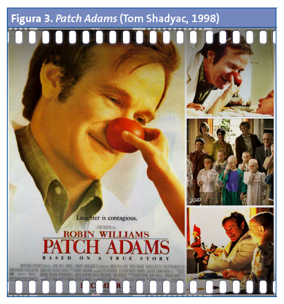 Patch Adams (Tom Shadyac, 1998) y la BSO de Marc Shaiman con piezas esenciales para transportarnos en la emoción, como "Children´s Ward", "Speech/children reprise" o "Butterfly/noodle pool". Una música que uno la escucha mientras se nos pone la nariz roja, dispuesto a ver la vida de otra manera y a creer en el valor de la risoterapia y la humanización de los hospitales (Cine y Pediatría 33)9 (Fig. 3).