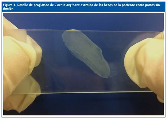 La teniasis es una parasitosis intestinal causada por la forma adulta de los cestodos. En el ser humano se presentan dos especies, Taenia solium y Taenia saginata1. Son hermafroditas y requieren un huésped intermediario para cumplir su ciclo: ganado porcino para T. solium y ganado bovino para T. saginata. El hombre es el huésped definitivo en el cual se desarrolla la forma adulta. La contaminación con heces humanas de terrenos y aguas hace posible la infección de los animales y el hábito de ingerir carne cruda, cierra el ciclo permitiendo la infección humana2,3. Actualmente los casos en España son infrecuentes, por ello presentamos el siguiente caso clínico.