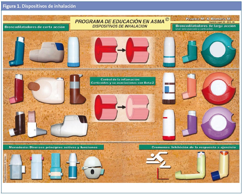 El principal inconveniente de la vía inhalada para la administración de fármacos estriba en la dificultad que la mayoría de los pacientes, incluidos los niños y adolescentes, tienen para utilizarlos correctamente, además los diferentes fármacos inhalados empleados para el tratamiento del asma se encuentran disponibles en un gran número de dispositivos cuya técnica de administración es distinta, siendo preciso, para garantizar la efectividad de esta vía, que el mecanismo de administración sea el adecuado para cada inhalador, ya que cuando se realiza la técnica de forma correcta el resultado es similar2. Por esta razón, los profesionales sanitarios que atienden a los niños y adolescentes con asma deberán conocer los distintos dispositivos existentes y su correspondiente forma de empleo, y ser capaces de educar a la familia y al paciente para la adquisición de las habilidades relacionadas con su manejo, como uno de los puntos clave recomendado en la educación del asma1. La disminución del número de crisis y de hospitalizaciones y un mayor grado de satisfacción del niño y su entorno se asocian con el diseño de un plan de educación que contenga la enseñanza de la técnica de inhalación y que se entregue por escrito3.