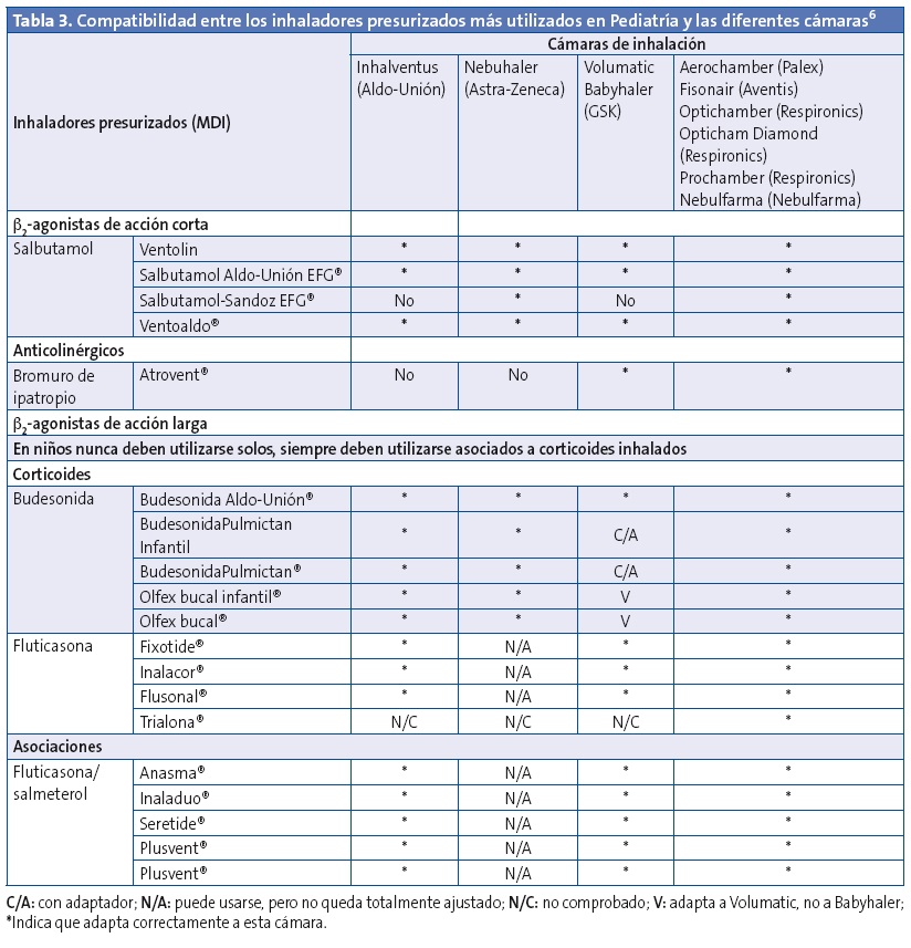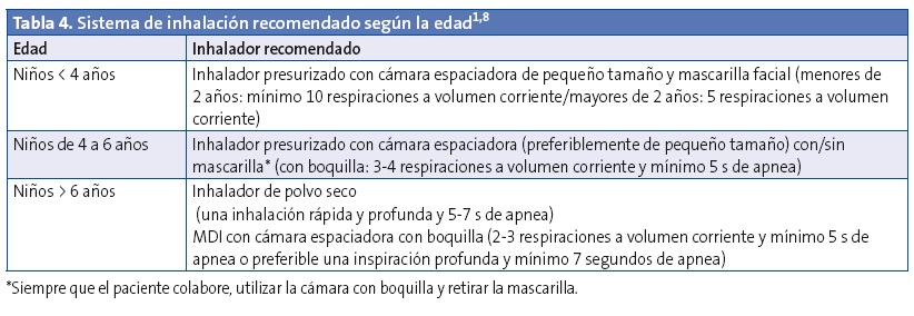 No existe el inhalador y/o cámara ideal, ni pruebas para decidir cuál es el dispositivo más adecuado para cada paciente, por lo que, en ausencia de evidencias, en el momento de la prescripción cada pediatra debe escoger aquel que mejor se adapte a sus necesidades.