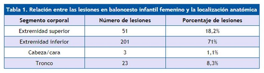 Conclusiones: la práctica de baloncesto por parte de niñas de entre 12 y 13 años presenta un riesgo de lesión que no debe pasar desapercibido, tanto por el promedio de lesiones registrado, como por la posibilidad de que existan recidivas y que la lesión acarree consecuencias a nivel académico.