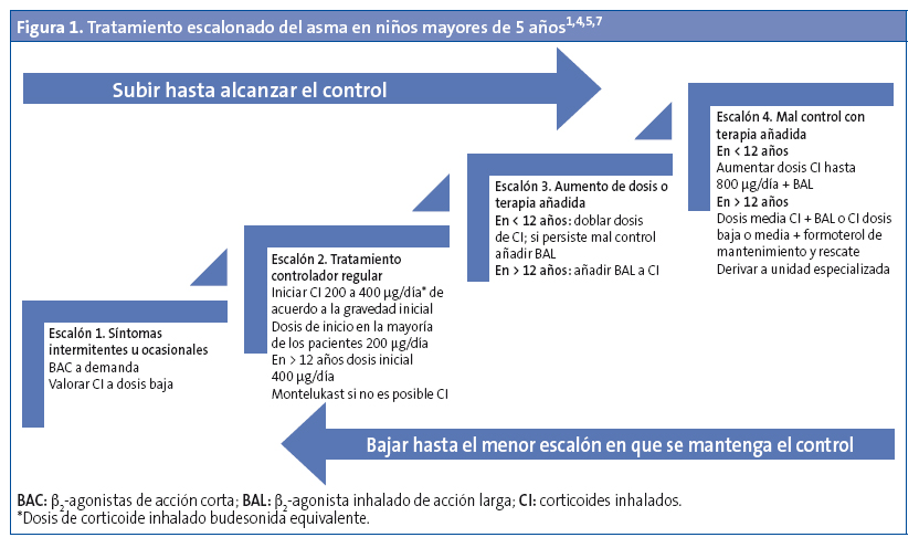 El tratamiento del asma debe ser individualizado, escalonado y ajustarse de forma continua, con el fin de que el paciente consiga el mejor control posible con los mínimos efectos adversos1,2,4,5,6,7.