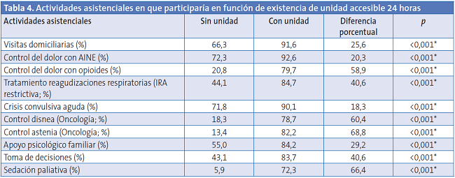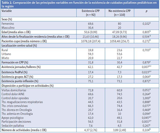 Conclusions: the existence of specific resources for pediatric palliative care with 24-hours telephone availability has a positive impact on the disposition of Primary Care pediatricians in participating in the treatment plans of patients with palliative care needs. In order to implement palliative care in this area, training programs must be strengthened.