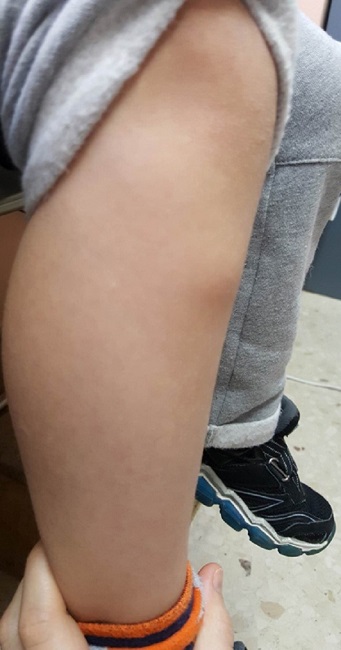 Niño de cinco años que acude a consulta del centro de salud por un bultoma en la zona superior de pierna derecha de un mes de evolución. En la anamnesis dirigida, la madre cuenta que no existe antecedente traumático. No refieren presencia de síntomas generales como fiebre, pérdida de peso o astenia. Además, no hay dolor a la palpación o de forma espontánea. No han observado un aumento de tamaño en el tiempo de evolución.