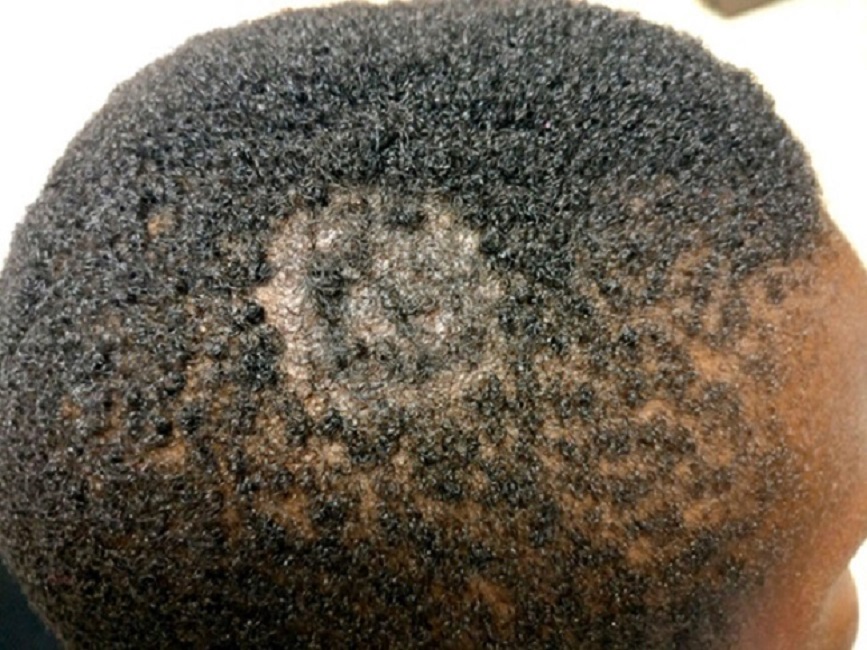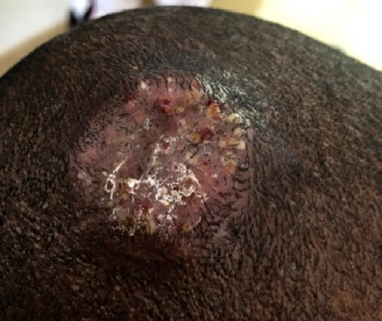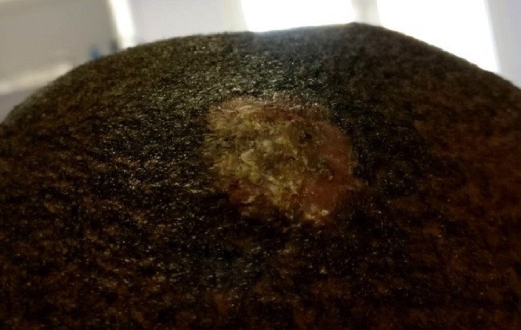 Las lesiones descritas corresponden a una tiña inflamatoria o querion, una forma de tiña de la cabeza frecuente en la población pediátrica. Si bien la mayoría de los casos se deben a dermatofitos del género Trichophyton, también puede ser originada por Epidermophyton y Microsporum.