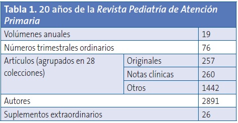 Con este primer número de 2018 comenzamos el volumen 20 de la Revista Pediatría de Atención Primaria (RPAP). Cumplimos, por tanto, 20 años (1999-2018), lo que para una publicación científica es un periodo de tiempo que marca los límites de una adolescencia que, tras sus inevitables arrebatos y altibajos, se abre a la vida adulta, más estable y productiva, que deseamos en los próximos años.