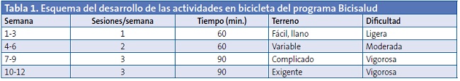 Conclusiones: Bicisalud produjo una mejora moderada pero no mantenida en las principales variables de estudio. Programas más prolongados, que incluyan la promoción del uso habitual de la bicicleta, tienen indicios de mayor efectividad para la prevención y tratamiento del sedentarismo, el exceso de peso y sus consecuencias.