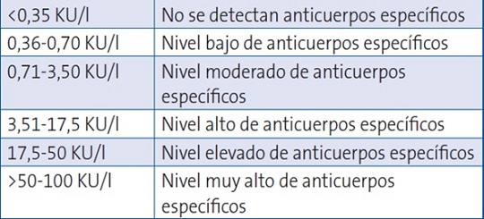 Midiendo niveles de IgE frente a componentes del trigo (en la Tabla 1 se recogen las cifras que se consideran positivas).