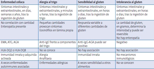 Ortiz C, Valenzuela R, Lucero Y. Enfermedad celíaca, sensibilidad no celíaca al gluten y alergia al trigo: comparación de patologías diferentes gatilladas por un mismo alimento. Rev Chil de Pediatr. 2017;88:417-23.