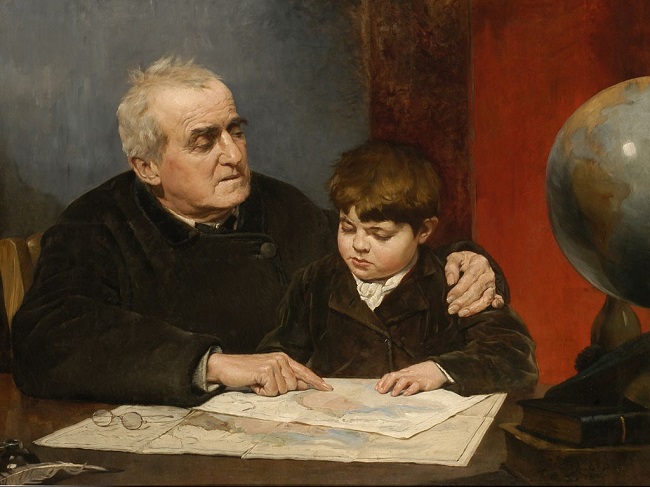 Lección de geografía. Alfredo Valenzuela Puelma, 1883