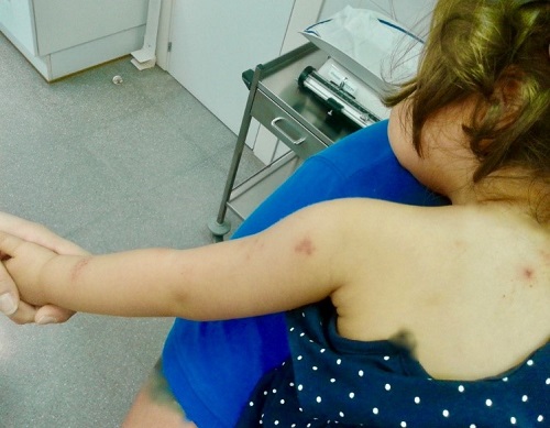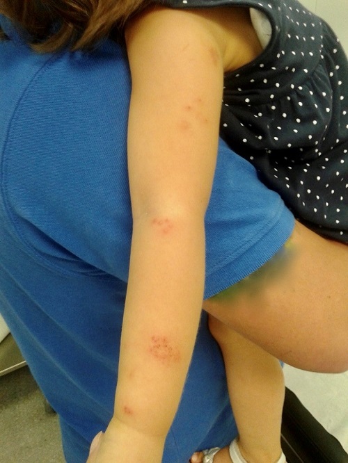 Niña de 20 meses cuyos padres acuden al servicio de urgencias por la aparición de una erupción cutánea en el brazo izquierdo y la espalda de 24 horas de evolución.