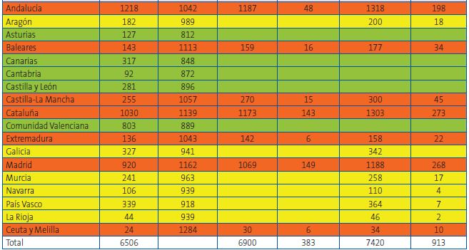 Según los datos del Portal Estadístico del Ministerio de Sanidad, Consumo y Bienestar Social y su portal de Atención Primaria (los datos de TIS por pediatra del Ministerio de 2017) 6, existen siete comunidades con más de 1000 niño por pediatra y doce, además de Ceuta y Melilla con más de 900 ( Fig. 3).