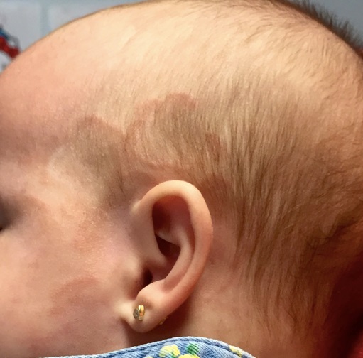 Lactante de dos meses y medio de vida que consultan en el servicio de urgencias por erupción en la cara y el cuero cabelludo de un mes de evolución, cuyas lesiones van aumentando en número sin desaparecer las previas, en tratamiento actual con hidratante facial.