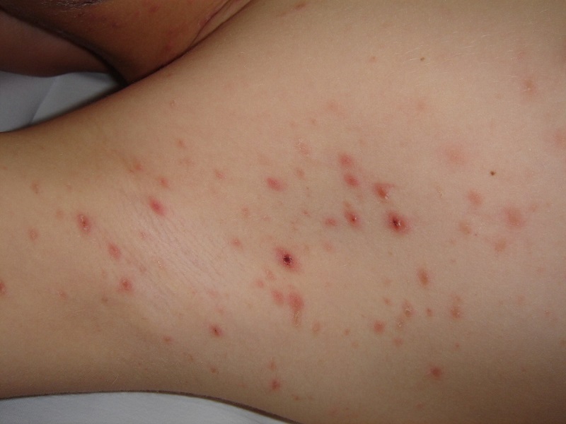 Presentamos el caso de un escolar de 8 años, sin antecedentes familiares ni personales de interés, que acude a Urgencias tras la aparición de un exantema papuloso pruriginoso localizado en el cuello y el tronco de 3 días de evolución. Tras ser valorado es dado de alta con diagnóstico de varicela.