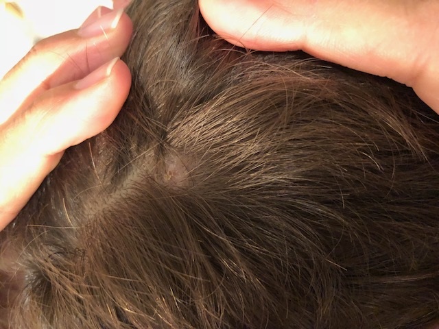 Figura 4. Pequeña zona alopécica en cuero cabelludo dos meses después de la picadura de la garrapata
