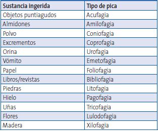 La relación de sustancias inorgánicas que pueden ser incorporadas desde el exterior en pacientes con pica puede ser de lo más variado ( Tabla 1).