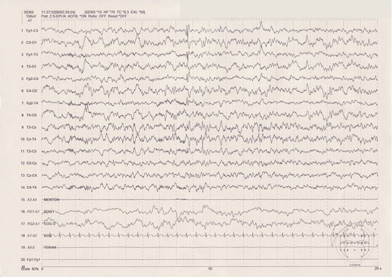 Se realiza EEG de sueño diurno ( Fig. 1 y Fig. 2), donde se registra actividad paroxística focal en regiones centrales durante el sueño non rapid eye movement (nREM), por lo que se decide suspender ciproheptadina e iniciar tratamiento con ácido valproico. Presenta mejoría, con un único episodio de menor intensidad y duración, cediendo posteriormente la clínica.
