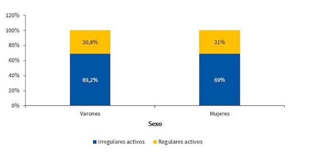 Regularmente activos: personas que hayan caminado o realizado otra actividad física de intensidad moderada, con una duración acumulada de al menos 30 minutos al día, en esfuerzos mínimos de diez minutos seguidos, durante cinco días o más en los últimos siete días, o que hayan realizado actividades vigorosas con una duración acumulada de al menos 20 minutos seguidos durante tres días o más en los últimos siete días. Pertenecen a esta categoría aquellos niños que, aparte de la actividad física escolar, realizaban actividad física extraescolar.