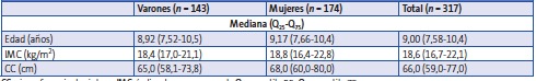 Los resultados descriptivos se expresaron como mediana, cuartilo 25 (Q) y 75 (Q), dada la distribución no paramétrica de las variables analizadas 25.