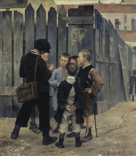 Hoy vemos este Una reunión como un prodigio de realismo social, y como uno de los principales ejemplos de representación pictórica de la infancia. La expresión corporal de los seis zagales es todo un poema y sus rostros (los que se ven, y los que no se ven) son un acierto digno de la medalla que Marie no consiguió. Nuestro homenaje para ella.