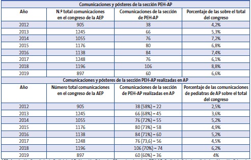 PEH-AP: Pediatría Extrahospitalaria y Atención Primaria.