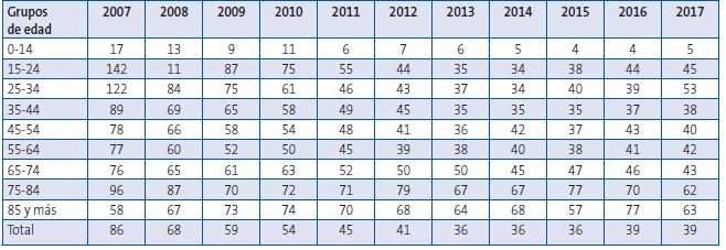 La siniestralidad de tráfico presenta una tendencia descendente global desde 2008 a 2017 ( Tabla 1), aunque con una estabilización notable en los últimos años y una tendencia global constante al alza en los últimos cuatro años.