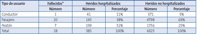 El mayor número de muertes de menores de entre 0 y 14 años se produjo en niños pasajeros de vehículos: 20 de los 28 niños fallecidos en 2016. De los niños heridos hospitalizados, la mayor frecuencia se produjo cuando eran peatones (52%), y en segundo lugar como pasajeros (38%) ( Tabla 4).