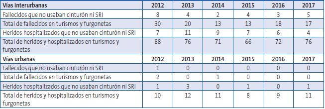 Uno de los objetivos de la DGT es conseguir una cifra de cero niños fallecidos en accidente de tráfico sin llevar cinturón o sistema de retención infantil (SRI). Lamentablemente es un objetivo no cumplido, tal como se aprecia en la Tabla 6.
