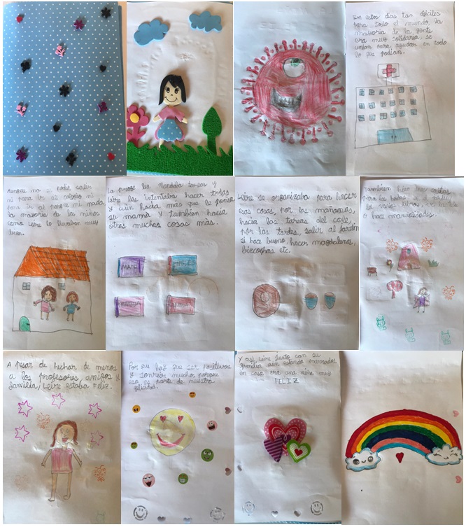 En los relatos se observa tanto el optimismo de algunos niños (“todo saldrá bien”) como el aburrimiento que sienten en ocasiones. Valoran negativamente el no poder ver a sus amigos y a sus abuelos y positivamente el cambio de la vida en casa, el estar más tiempo con sus padres y hermanos. Relatan cómo hacen los trabajos que les mandan en el colegio, juegos, repostería, etc. En cuanto a consecuencias positivas, en dos casos refieren que con el confinamiento está disminuyendo la contaminación ambiental y en tres, que con esto se consigue que enfermen menos personas. Otros cuentos dan rienda suelta a su imaginación, y nos hablan de duendes u otras cosas que no tienen nada que ver con el coronavirus y el aislamiento, pero que son agradables de leer.