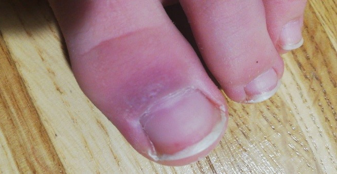 Cuadro clínico: astenia y cefalea de unos seis días de evolución; consulta por la aparición de lesiones maculares rojo-violáceas en dedos de ambos pies con dolor local. No hay otra sintomatología asociada (Fig. 1-2 y Fig. 3).