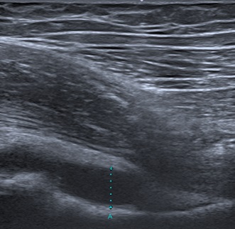 Se realiza un hemograma con leucocitosis de 14 550/mm3 (10 630/mm3 neutrófilos, 2300/mm3 linfocitos) y una proteína C reactiva (PCR) de 69,9 mg/l, así como líquido articular en la ecografía de partes blandas (Fig. 1) y en la resonancia magnética (RM) derrame articular de cadera derecha con engrosamiento sinovial y afectación acetabular con edema de los músculos obturadores y psoas-ilíaco ipsilaterales (Fig. 2), datos sugestivos de artritis de cadera.