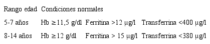 Alcaraz GM, Bernal CA, Aristizábal MA, Ruiz MB, Fox JE. Anemia y anemia por déficit de hierro en niños menores de cinco años y su relación con el consumo de hierro en la alimentación. Turbo, Antioquia, Colombia. Invest Educ Enferm. 2006;24:16-29.
