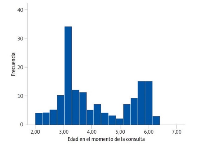 Se reclutaron un total de 149 participantes, padres o madres de 77 niñas y 72 niños. En la Fig. 1 se muestra la distribución por edades de los niños participantes. Los datos socioeconómicos de las familias participantes se muestran en la Tabla 1.