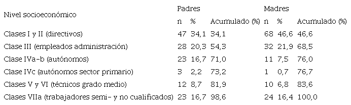 Para analizar el nivel socioeconómico familiar se utilizó la Clasificación de Goldthorpe-Feito, conforme a lo establecido por la Sociedad Española de Epidemiología10.