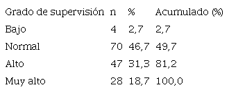 Por lo que a la supervisión parental se refiere, la clasificación de los padres según el grado de supervisión percibida por el profesional sanitario muestra que más de la mitad de las parejas fueron consideradas con un grado de supervisión normal (46,7%) o alto (31,3%) (Tabla 2).