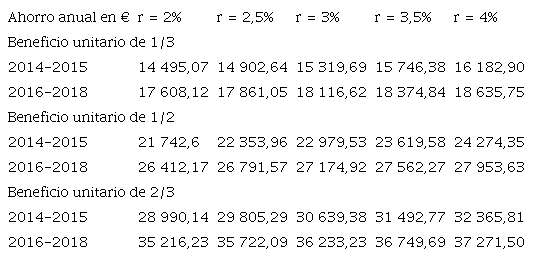 El análisis del ahorro/coste se realiza capitalizando los datos con un interés de referencia del 3% hacia 201913.