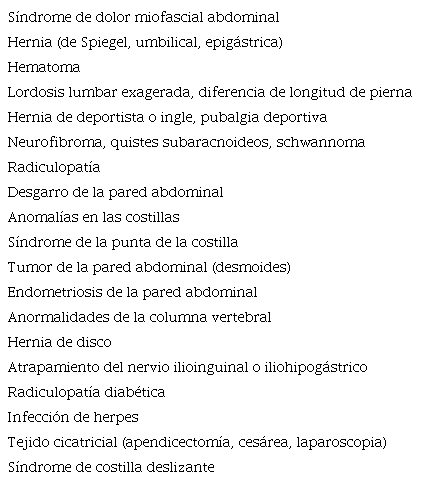 El síndrome de ACNES forma parte del diagnóstico diferencial del dolor abdominal crónico, siendo frecuentemente infradiagnosticado3,5.