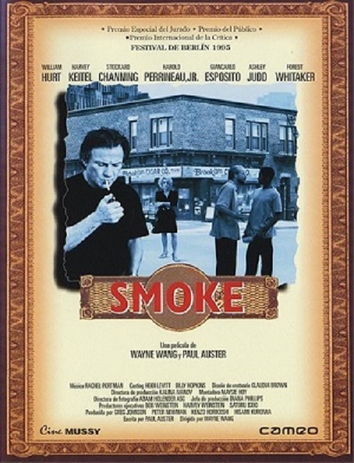 Smoke (Wayne Wang, 1995 [Fig. 9]). Historia coral apoyada en el excelente guión de Paul Auster, retrata las vidas de varios personajes en un vecindario de Brooklyn, todas ellas conectadas por el estanco que regenta Auggie (Harvey Keitel). Empleando el “humo” que da título a la cinta como metáfora de la existencia –por lo volátil y efímera, pero también por lo impredecible y fascinante–, sus máximos responsables demostraron que se podía hacer un filme cargado de humanidad, esperanza y emoción sin caer en lo ingenuo o banal. Un referente del cine indie, que contó con un gran elenco actoral con William Hurt, Stockard Channing, Forest Whitaker, y Ashley Judd, entre otros acompañando a Harvey Keitel, epicentro de la historia de aquel verano de 1987.