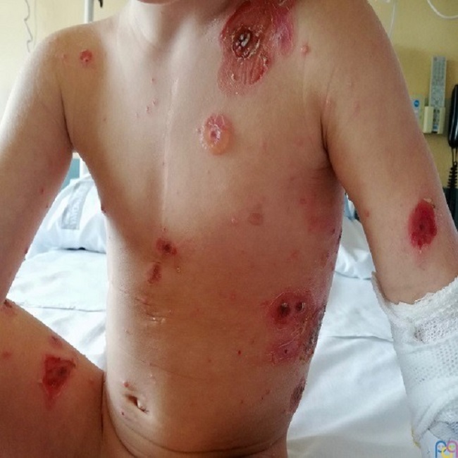 Niño de tres años que acude a urgencias por aparición de lesiones vesiculares en el tronco de dos días de evolución, con empeoramiento progresivo. Asocia fiebre de hasta 38,9 °C en las últimas 12 horas. Había iniciado tratamiento con amoxicilina oral y mupirocina tópica 24 horas antes de consultar, sin mejoría.