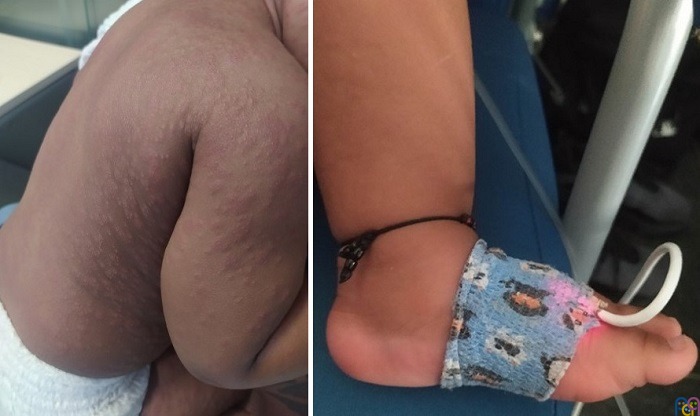 Se presenta el caso de un lactante de 11 meses, correctamente vacunado, que acudió a urgencias por fiebre alta de 4 días de evolución, vómitos, exantema generalizado y afectación del estado general. A la exploración física presentaba exantema no pruriginoso en tronco, cara y extremidades, respetando palmas y plantas (Figura 1). La tensión arterial era de 112/77 mmHg y la frecuencia cardiaca de 170 lpm.