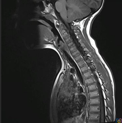 En las pruebas de imagen: radiografía (Rx), tomografía axial computarizada (TAC) y resonancia magnética nuclear (RMN), se presenta una apariencia lítica con o sin esclerosis en los márgenes7. Las lesiones espinales afectan sobre todo al cuerpo vertebral y se muestran como lesión lítica o anormal aplanamiento del mismo con edema perilesional.