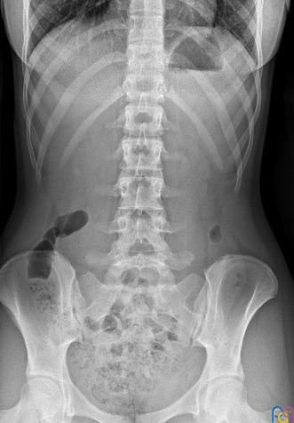 Niña de 14 años, sin antecedentes médicos de interés, que acude a la consulta por presentar desde hace dos meses episodios de dolor de espalda generalizados, especialmente a nivel lumbar derecho. No asocia cuadros infecciosos concomitantes ni afectación de otras articulaciones. Practica habitualmente kárate, pero no refiere movimiento brusco o traumatismo relevante. Desde hace un mes, recibe tratamiento analgésico y fisioterápico con escasa mejoría.