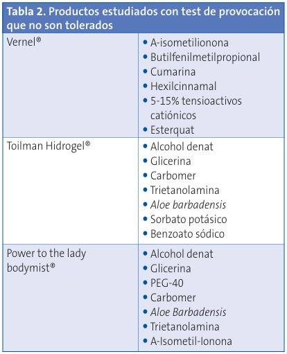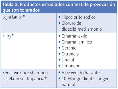 Durante los seis años de seguimiento, en dos ocasiones se han realizado pruebas de provocación mediante estímulo olfatorio (gasas impregnadas de los productos que desencadenaban los síntomas y también de los que refería tolerar). En las Tablas 1 y 2 se indican los productos químicos con los que se realizaron las pruebas de provocación y las respuestas de tolerancia e intolerancia, respectivamente.