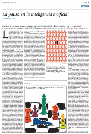 Oliver N. La pausa en la inteligencia artificial. Artículo de Opinión. En: El País; 03/05/2023 [en línea] [consultado el 12/12/2023]. Disponible en https://elpais.com/opinion/2023-05-03/una-pausa-cuestionable-en-la-inteligencia-artificial.html.