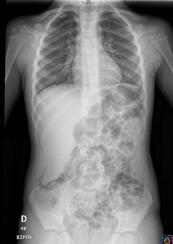 Se presenta el caso de un paciente varón de 4 años, sin antecedentes de interés, que consulta en el servicio de Urgencias por ingesta de cuerpo extraño. El paciente se encuentra asintomático y presenta una exploración física sin alteraciones. Para localizar el cuerpo extraño se realiza radiografía de tórax-abdomen, encontrándose como hallazgo incidental una hepatomegalia que llega hasta cresta iliaca derecha, no palpable en exploración física a su llegada. Tras rehistoriar dirigidamente al familiar del paciente y reexplorarle, se consulta al servicio de Radiología y se compueba que la imagen objetivada es del lóbulo hepático de Riedel (Fig. 1).