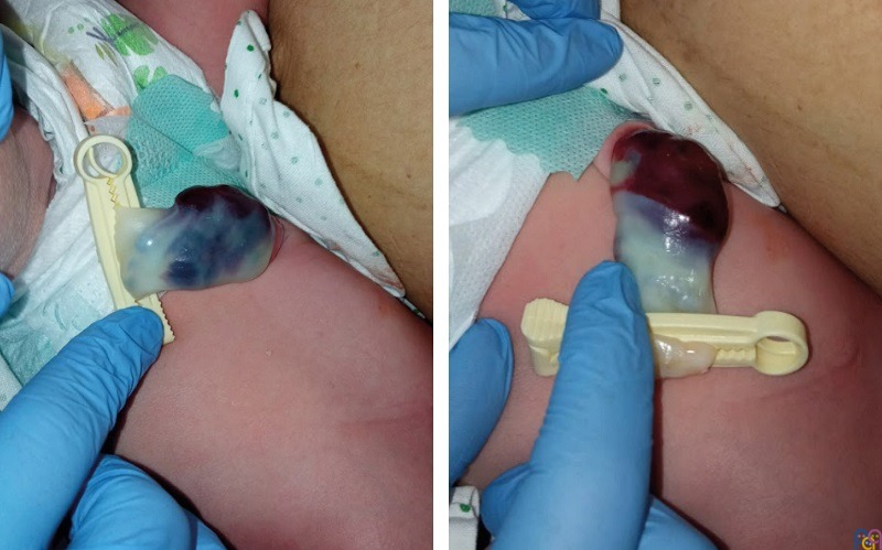 Abstract: We present the case of a newborn with no perinatal history of interest who presented a spontaneous and painless tumor in the proximal third of the umbilical cord 2 x 3 x 2 cm in size, purplish in color and soft in consistency, clinically and sonographically compatible with hematoma of the umbilical cord. It presents a favorable evolution with thrombosis of the hematoma after double clamping, without active bleeding and with a progressive decrease in size. Omphalorhexis at five days of life.