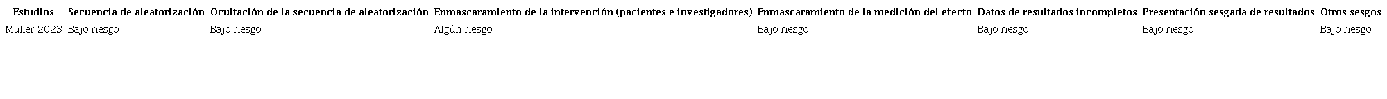 Evaluamos la calidad de la evidencia siguiendo la metodología GRADE, que incluye una valoración del riesgo de sesgos con la herramienta RoB-2 (Risk of Bias) de la Colaboración Cochrane.