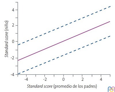 La media y la desviación estándar puede obtenerse en la tabla elaborada por Weaver et al. (Tabla 1)7 y debería utilizarse para los padres los datos correspondientes a los 18 años si tienen más de esa edad. Una vez obtenidos el SS del niño y la media de los SS parentales, se representarán sobre la gráfica de Weaver (Fig. 1). La influencia genética del perímetro cefálico del niño será determinante si el punto resultante se encuentra dentro del área determinada por la puntuación de los padres1,7.